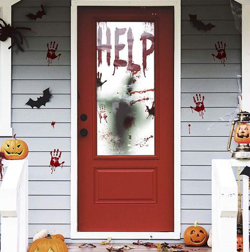 What would be scarier than bloody handprints, and a shadow of a person begging for help? Bloody decals are any easy way to bring this killer scene to life!