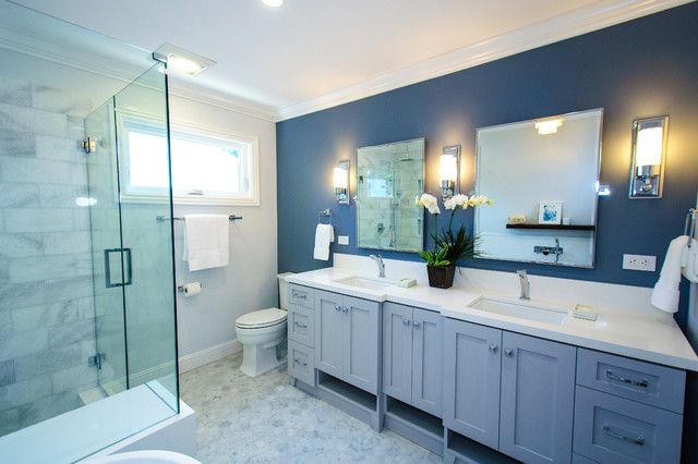 Wall-mount bathroom vanities come in a variety of styles and configurations. You can find a complete vanity with a countertop, or if you need something more versitile you can use partial sets or entirely separate pieces. Having these options allows you to easily customize your space with the type of storage you need. “You can use storage cabinets on the wall vertically or horizontally, open or closed, higher or lower,” says Bob Gifford, director of business development for Hastings Tile and Bath. “A wall-hung vanity is clean and airy and doesn’t seem like a big heavy box on the floor." Plus floating vanities make it easier to clean bathroom floors too.