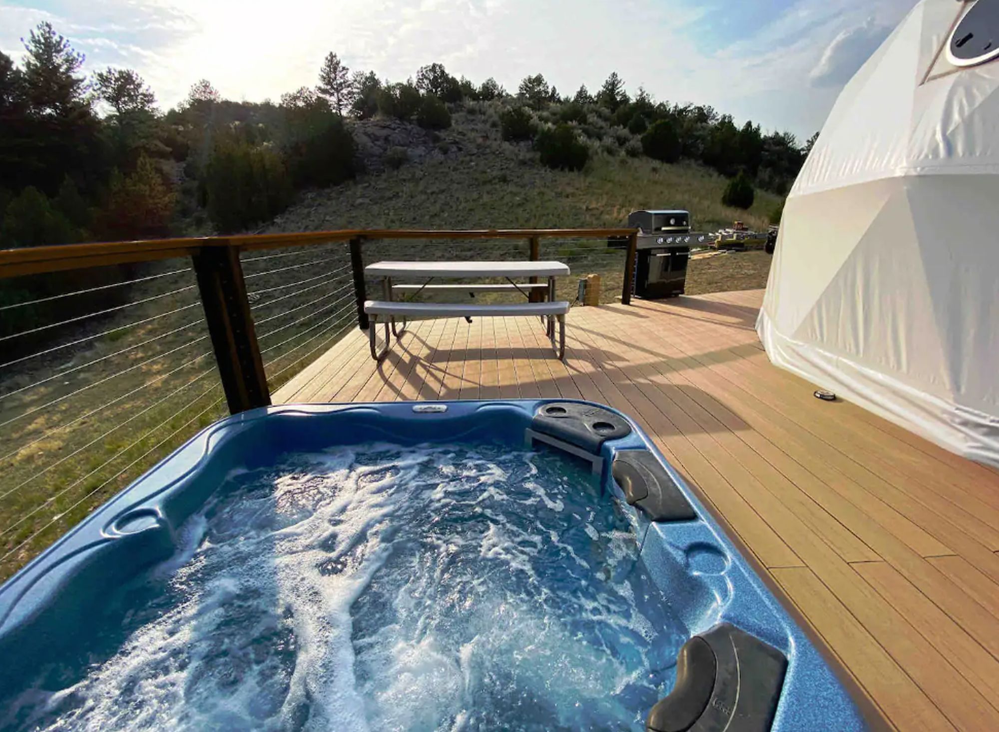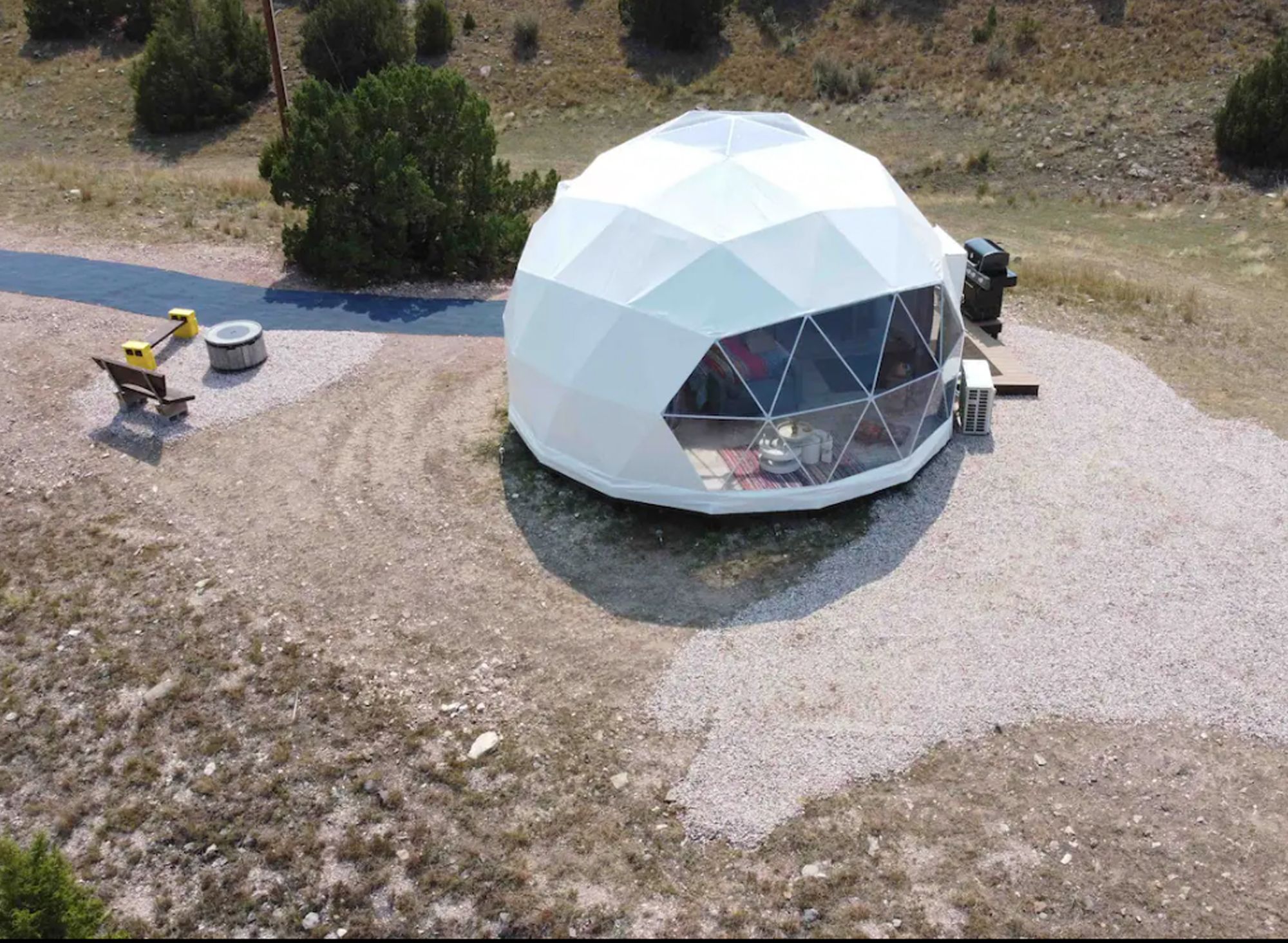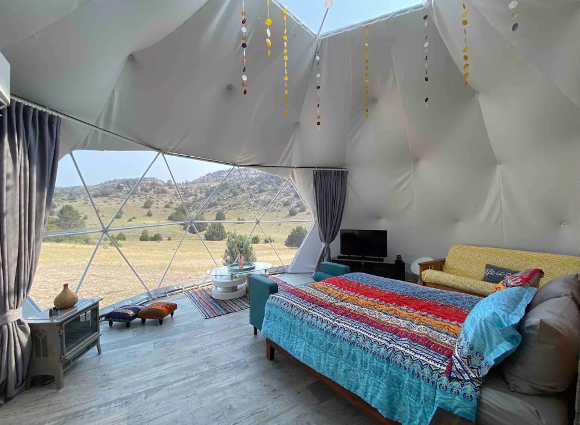 Go glamping in a very private boho chic dome enveloped in a pine and cedar wonderland! This hidden gem located in Hartville Wyoming, just 1.5 hours NE of Cheyenne, allows you to be fully immersed in nature, relaxation and adventure just beyond its panoramic window wall.