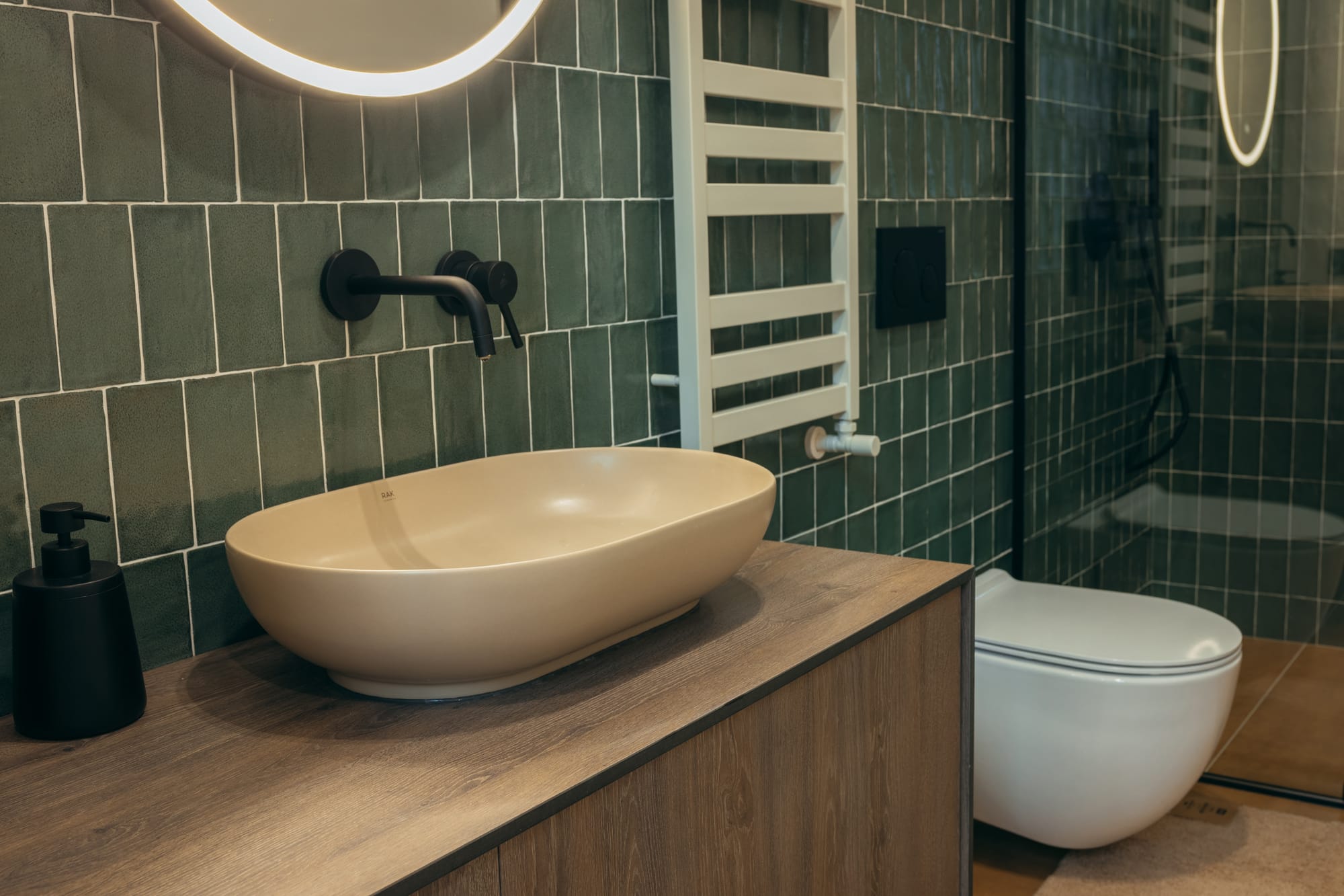 Green vanities are a subtle way to bring color into a bathroom. Paired with light countertops and warm fixtures, they create a look that feels elevated and serene.
