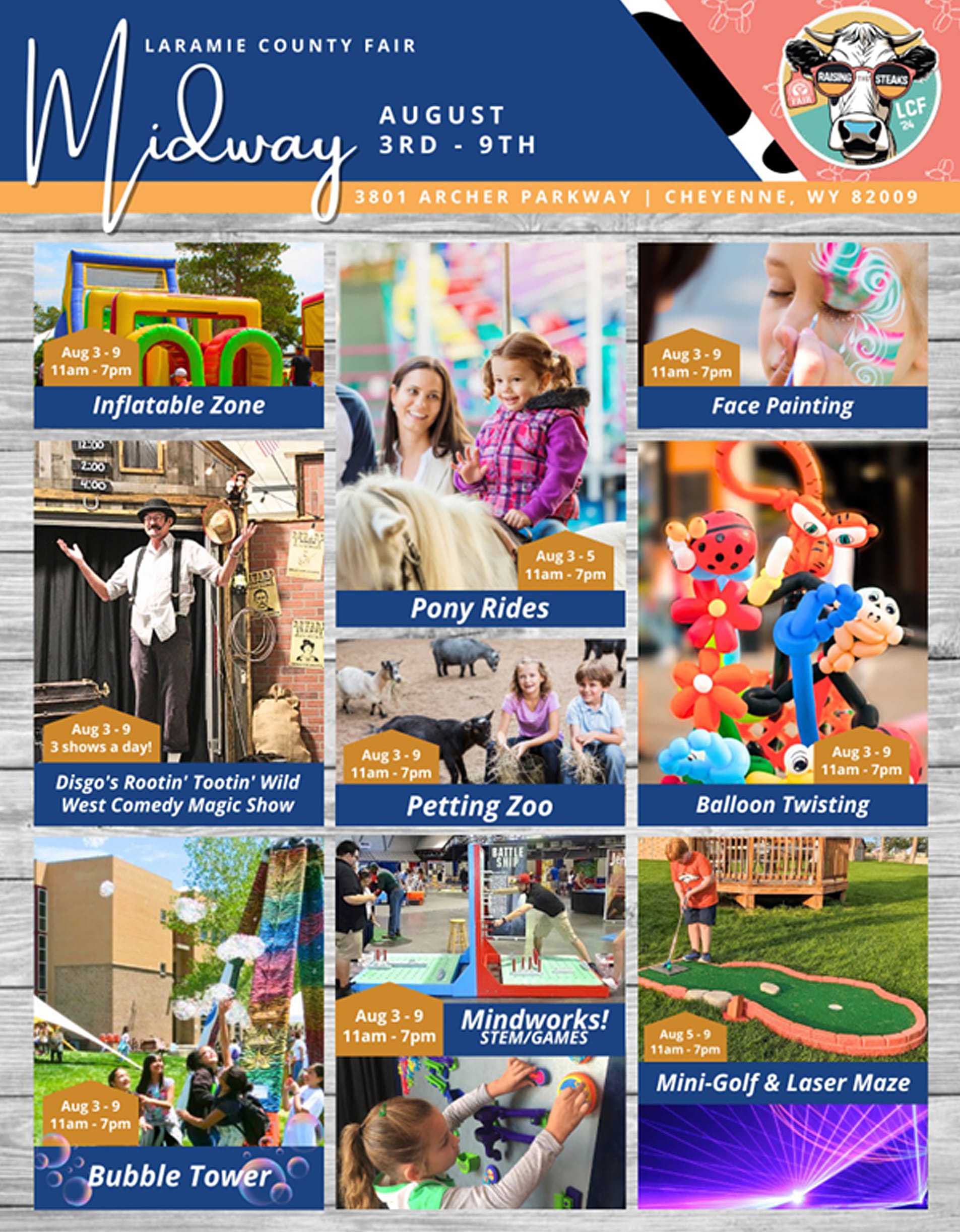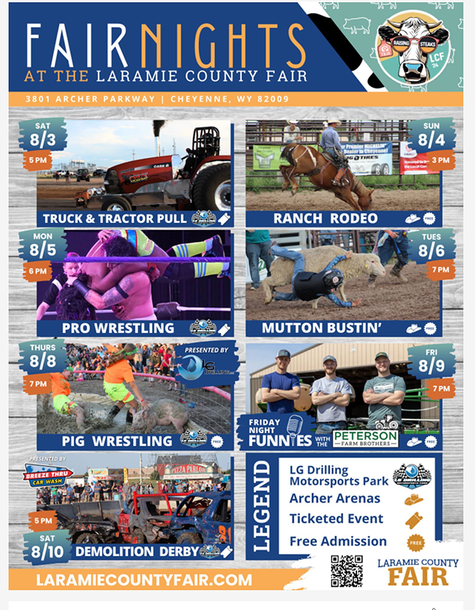 For detailed information about all of the events, times and happenings, go to laramiecountyevents.com/fair/ You can download your very own 2024 Fair Book, checkout daily lineups, take a look at a map and so much more! Come out and enjoy the fair!!