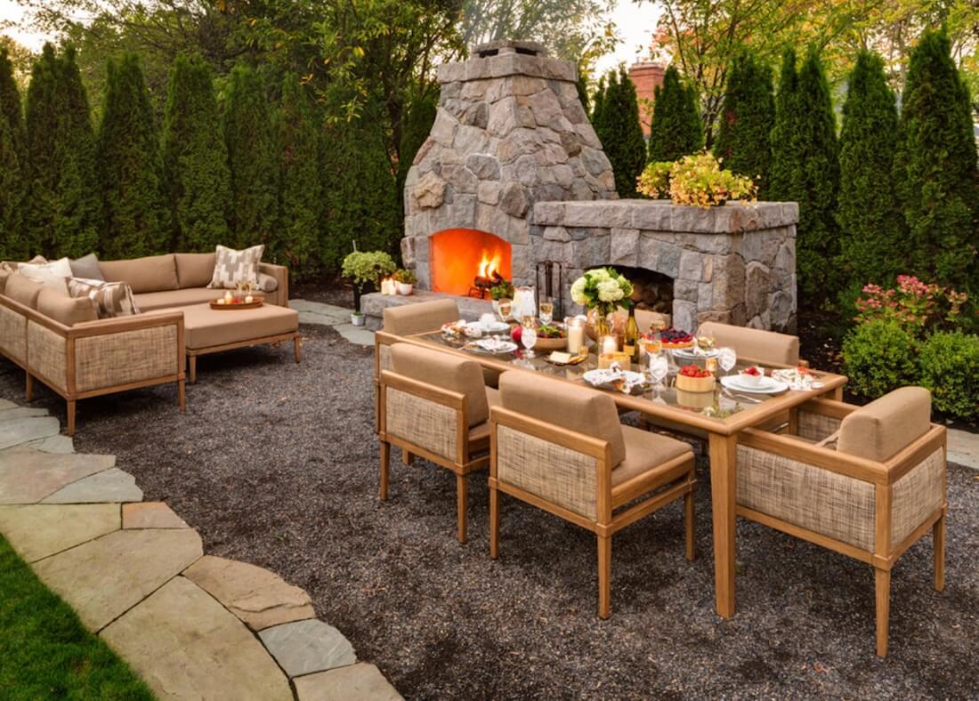 Everyone loves the look and feel of a fire pit or fireplace to enjoy in their backyard. Fire pits have come a long way, and have more of a artistic feel to them. Some fire pits have become more sleek and modern in design. However don't be shy if you would prefer more of a rustic feel to your fire pit by using stone surroundings. Along with fire pits, people have been adding traditional fireplaces right outside on their patios, which is a great way to add ambiance as you enjoy the fresh air.
