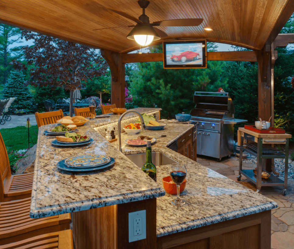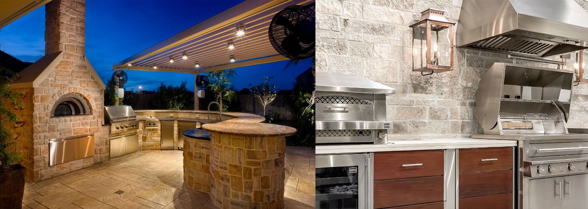 Outdoor kitchens continue to increase in popularity with some spaces featuring entire kitchens. You can add a small refrigerator, a variety of cooktops, grills and sinks. Stainless steel appliances tend to be more resistant to weather along with wear and tear. A common design aesthetic is to put the stainless steel appliances in stone or brick to help tie them into more of an outdoorsy look.